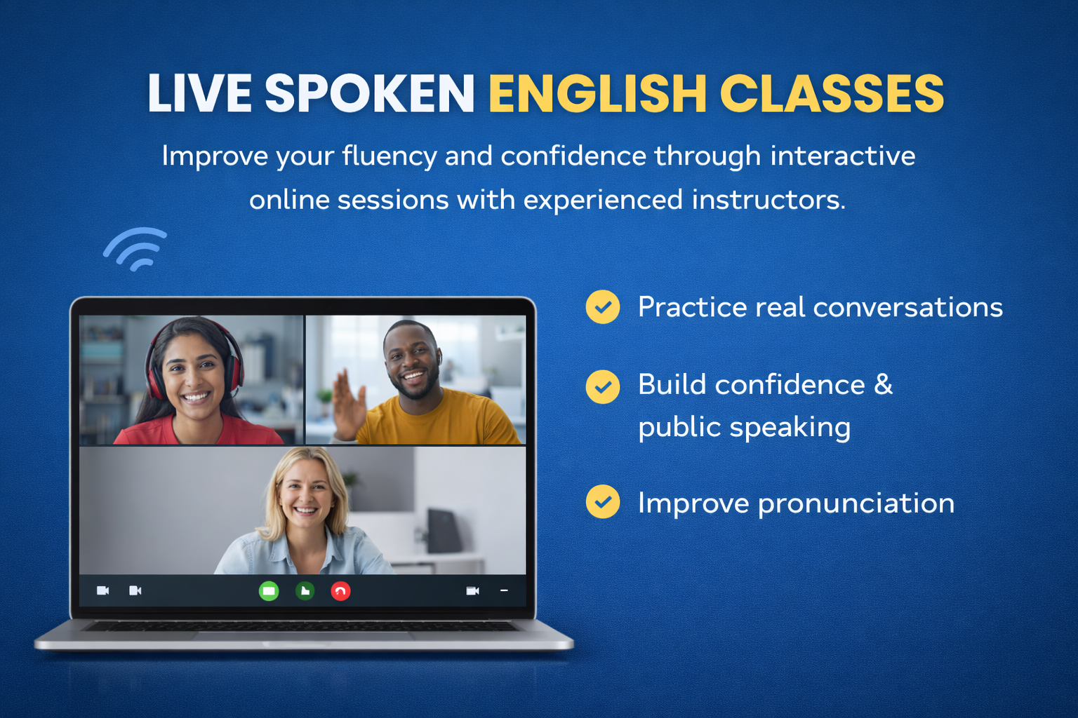 Our Live Spoken English Classes are designed to help you speak confidently and fluently in real-life situations. These interactive sessions focus on improving pronunciation, vocabulary, grammar usage, and everyday communication skills.